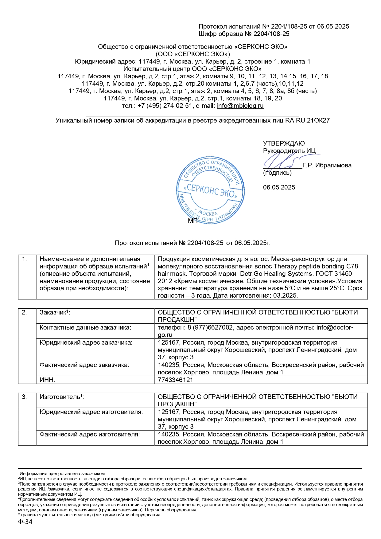 Вложимость в коробках (кол-во шт в 1 коробке): 20 Анонс: Супер ХИТ! код ТН ВЭД: 3305900009 Бренд: DctrGo Healing Systems Вес: 0,05 Производитель: ООО Бьюти продакшн Страна производитель: Россия Тип упаковки: Ваакумный диспенсер Сезон: Всесезонный продукт Год создания: 2024 Нишевая парфюмерия: Tiziana Terenzi Kirke Extrait de Parfum Название модели: Peptide Bonding 78 Класс опасности товара: не опасен Пол: унисекс Область использования: Москва Эффект: Молекулярное восстановление Тип волос: Для всех типов волос Единиц в одном товаре: 1 Условия хранения: от +5 до + 25 Способ применения: Нанести на влажные волосы после шампуня Срок годности: 36 мес - 2 отзыва к товару Несмываемая маска для восстановления волос после окрашивания и осветления Therapy peptide bonding C78 hair mask в Тюмени